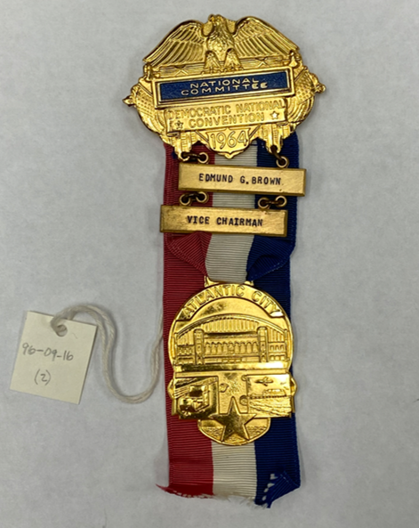 - California Governor Pat Brown's Democratic National Convention Vice-Chairman Delegate Badge