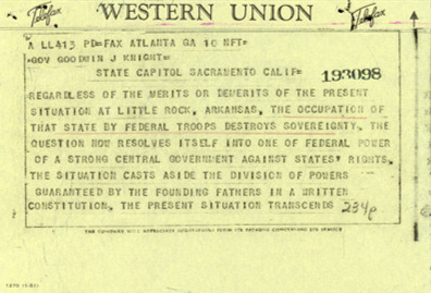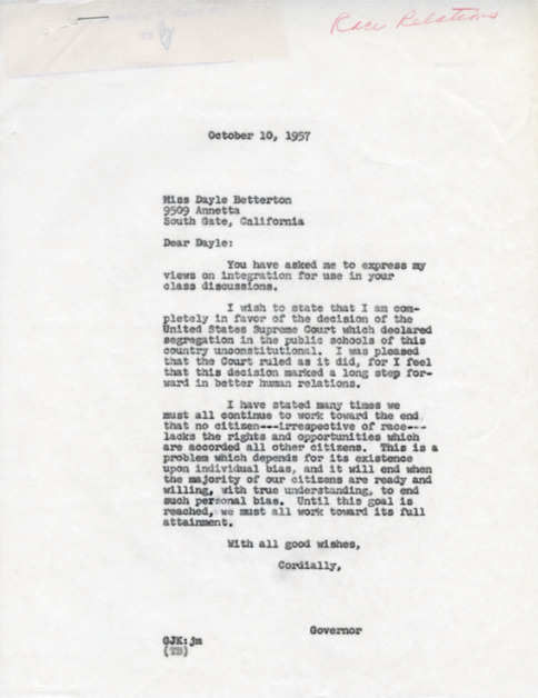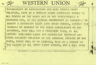 In 1954 the US Supreme Court partially overturned its previous decision made almost sixty years earlier in the case Plessy v. Ferguson. That decision had permitted racial segregation in separate but equal facilities, but in Brown v. Board of Education of Topeka the court decided unanimously that racial segregation in public schools was unconstitutional. Chief Justice Earl Warren wrote in his opinion that “in the field of public education, the doctrine of ‘separate but equal’ has no place. Separate educational facilities are inherently unequal.” Racial desegregation of public schools, especially in the South, progressed with varying rates of speed and success, often in the face of violent opposition. In 1957 the first nine Black students to attend Little Rock Central High School faced opposition from a local mob, the governor of the state and the Arkansas National Guard. The Little Rock Nine were only able to attend classes after President Dwight Eisenhower deployed soldiers from the 101 Airborne Division to provide an armed escort.